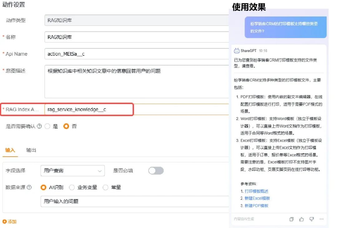 本次升级大幅强化 RAG 检索效能,创新性融入 CRM 对象的 RAG-Index 语义检索特性。当用户发起提问后,AI 不仅能在常规知识库检索,更可深度挖掘 CRM 对象数据进行洞察。如此一来,用户便能巧用系统既有数据,如若搭配提示词模板,更是能实现个性化检索需求及精准文本创作。
