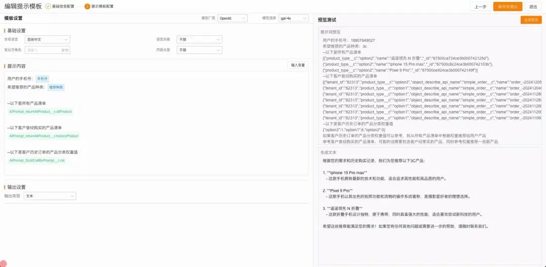 如下图所示,通过内容总结、提示词模板、对象数据更新的预设动作组合,可以让Agent作为你的客户跟进助手。将客群中总结客户对话记录,按结构化自动录入系统,并自动推进商机,从而节省大量销售人员录入商机、跟进记录的手动动作。