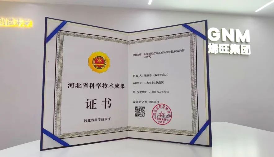 喜讯:由石家庄市科学技术局、石家庄市卫健委与石家庄市人民医院合作开展的“石墨烯治疗耳鼻喉科炎症性疾病的临床研究”课题,被河北省列为重大专项,并被河北省科学技术厅授予“河北省科学技术成果”证书!