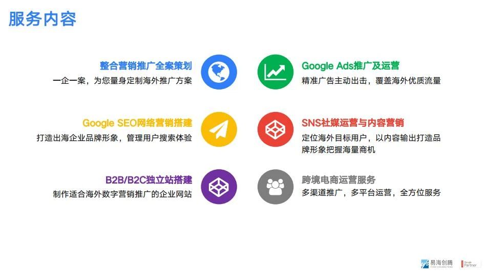 易海创腾成立于2017年,总部位于广州市花都区,并在深圳、中山设立分公司,在广州海珠区设立驻点办事处,服务辐射整个大湾区。致力于利用全球领先的大数据人工智能和精准广告投放方式的优势,为外贸企业提供一站式的海外推广营销解决方案。目前,我们已助力1000+中国企业成功扬帆出海,开拓海外市场,打造国际品牌。
