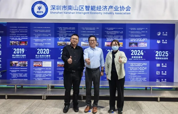 12. 2025年11月12日,深圳市南山区智能经济产业协会执行会长范丛明、执行秘书长俞永豪一行走访理事单位深圳市恩玖科技有限公司(以下简称“恩玖科技”),受到了恩玖科技总经理吴建华、副总经理赵怡的热烈欢迎。