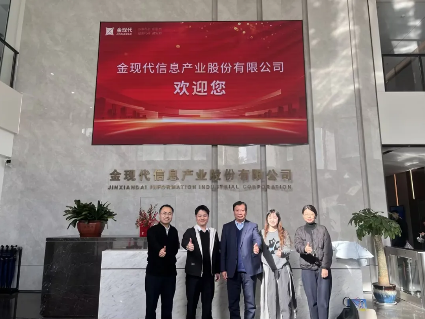 37. 2025年11月28日,深圳市南山区智能经济产业协会执行秘书长俞永豪一行走访金现代信息产业股份有限公司,围绕工业软件核心技术研发、企业数字化转型全流程解决方案、信息化系统迭代升级、行业标准规范制定及产业生态协同发展等核心议题,与金现代信息产业股份有限公司的副总裁黄绪涛、 人工智能研究所所长宗云兵、商务部部长胡翠梅 进行深度交流,共探软件赋能产业高质量发展新路径。