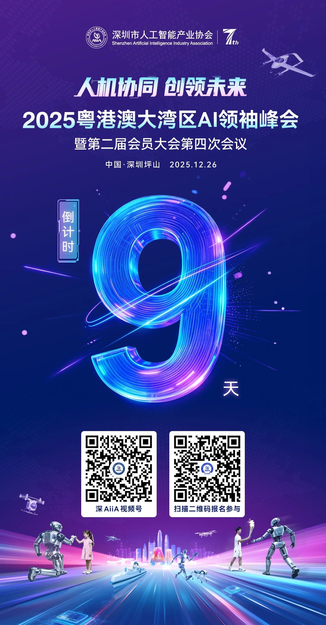 【年会倒计时9天】 12月26日 | “人机协同·创领未来”2025粤港澳大湾区AI领袖峰会暨第二届会员大会第四次会议