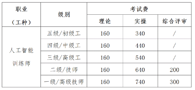 (一)认定职业(工种):人工智能训练师(一级、二级、三级、四级、五级)