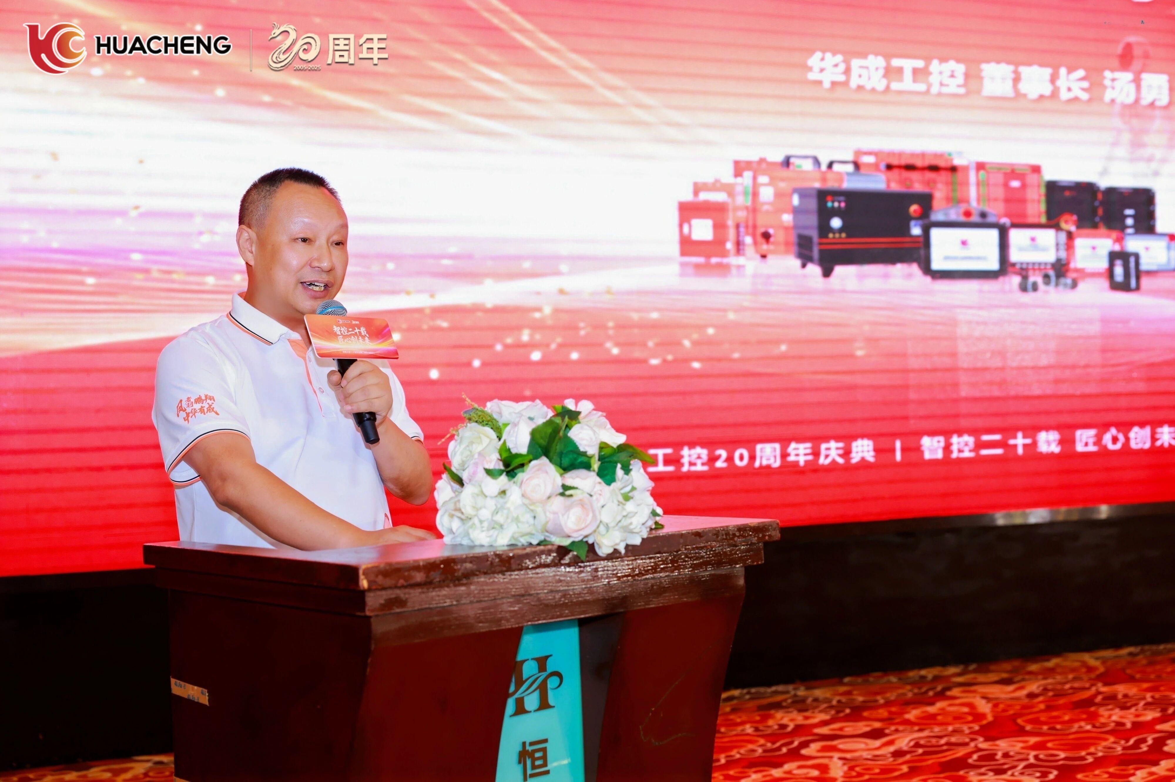 庆典现场,华成工控董事长汤勇以《智控二十载,匠心创未来》为题发表演讲,回溯了企业从“国产替代”初心出发的奋斗征程。此后二十年,华成工控步步扎实:近7年攻坚实现注塑机械手控制系统超60%市场份额,确立行业使用标准;2015年响应“中国制造2025”战略,协同产业链突破工业机器人“卡脖子”技术,助力2023年国产机器人份额与进口持平;如今手握近千项知识产权、服务万家客户,更在“具身机器人元年”推出具身智能控制系统,将20年沉淀的控制算法转化为未来竞争力。汤勇董事长强调,华成的每一步都离不开“用明天的视角做今天的产品”的远见,更离不开员工拼搏、客户信任与生态支持。