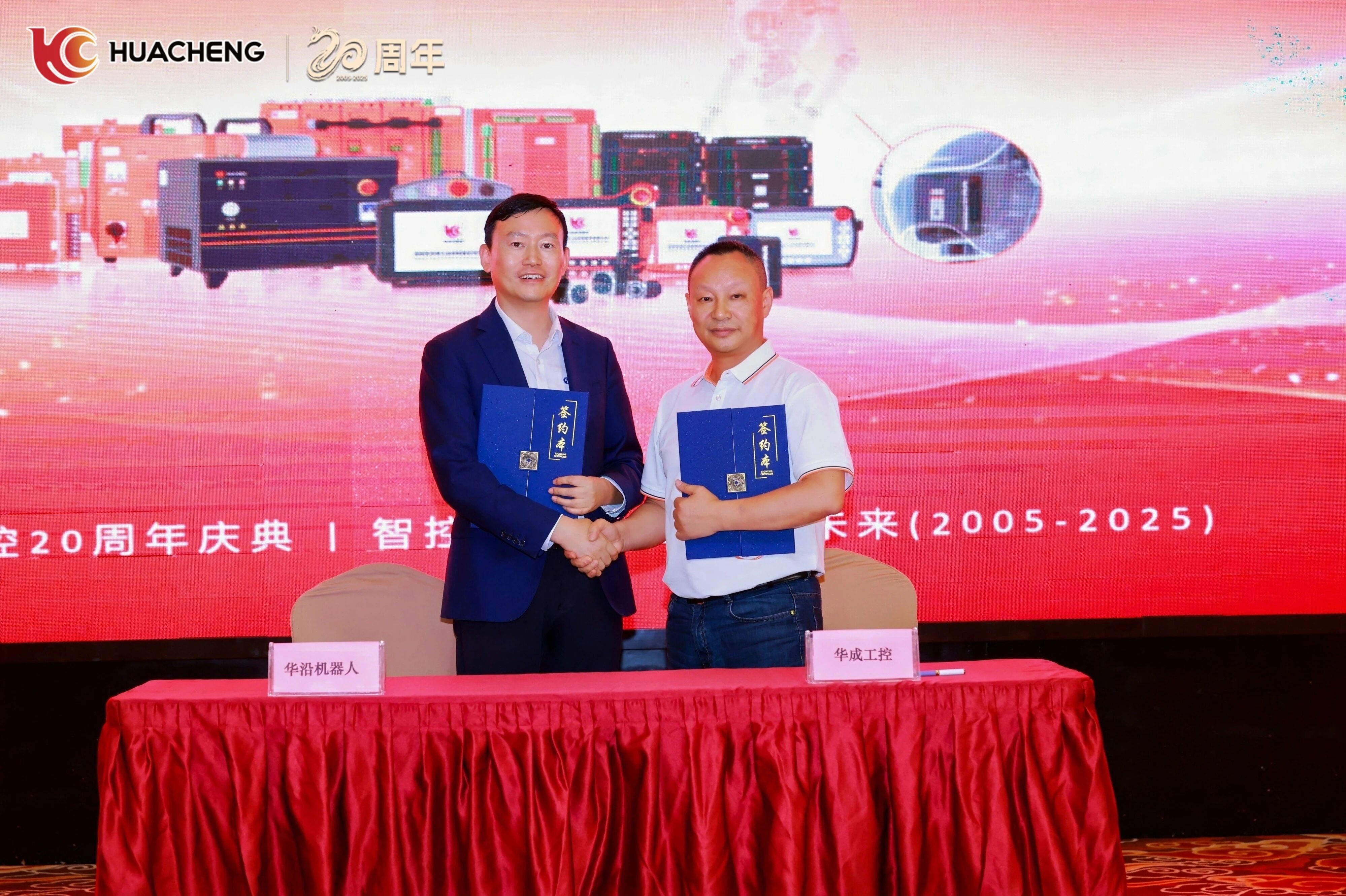 庆典现场还迎来重要合作时刻——华成工控与华沿机器人正式签订生态合作协议。双方将聚焦技术协同、场景落地、产业链整合三大维度,依托华成的核心控制技术与华沿的机器人本体研发优势,加速纯国产具身智能装备的技术转化与场景落地,为工业高质量发展注入新动能。这一签约不仅是企业间的合作,更标志着国产智控与机器人制造领域核心力量的深度绑定,为“中国智造”产业链协同树立新标杆。