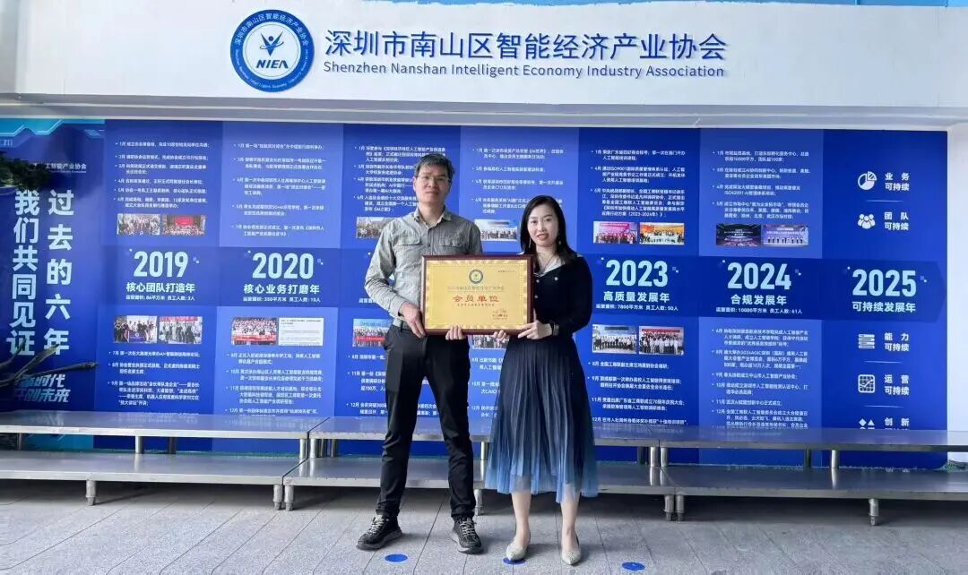 2025年11月25日,会员单位东莞市江涵电子有限公司总监张中明一行到访协会,受到深圳市南山区智能经济产业协会轮值会长杨诗虹的热情接待,并颁发会员牌匾。双方就科技创新领域的潜在合作机会展开了深入交流与探讨。此次到访为双方有望在未来促成更丰富的资源共享、优势互补的创新合作。