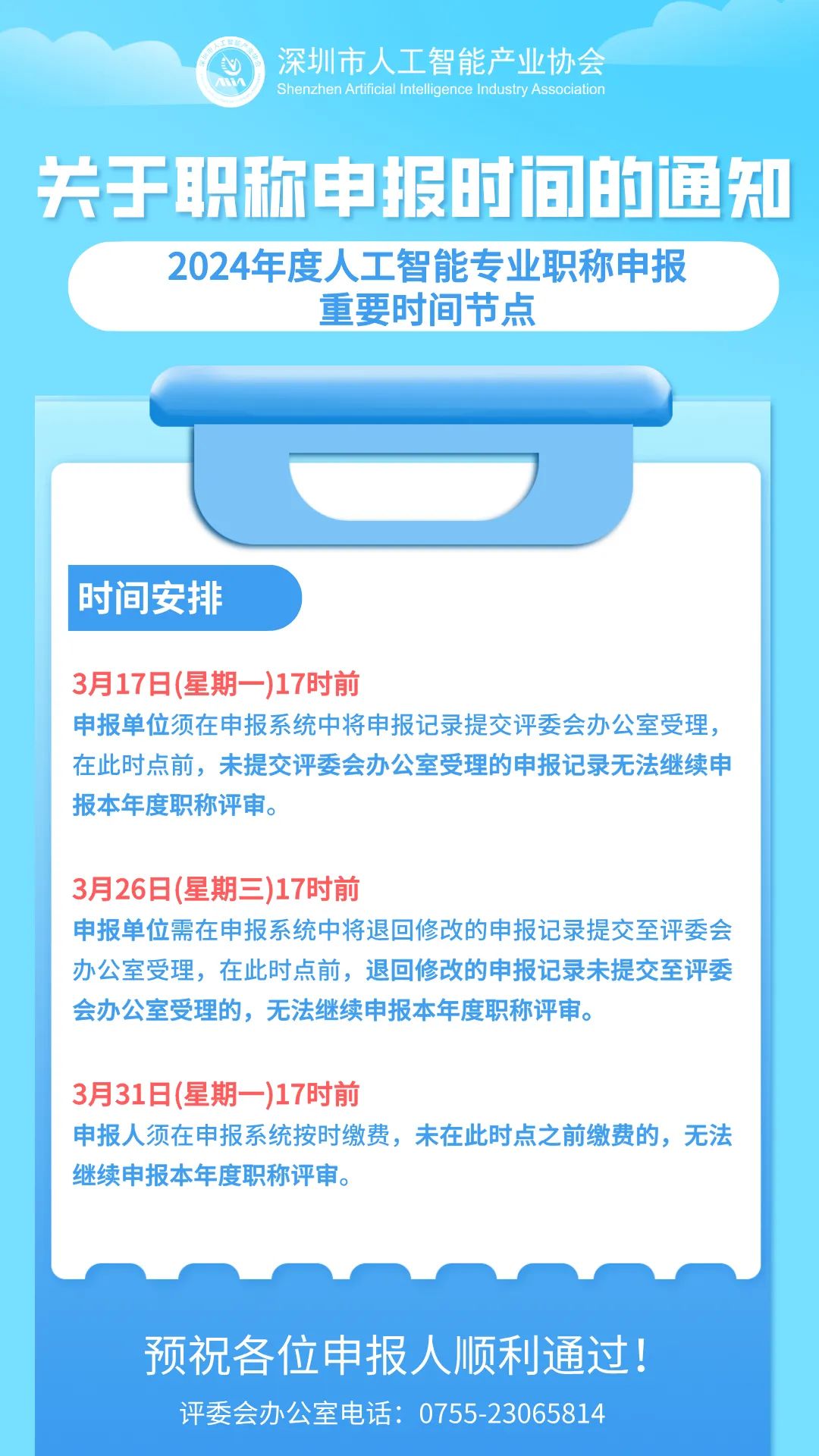 【重要通知】关于2024年度深圳市人工智能专业职称申报重要时间节点的通知