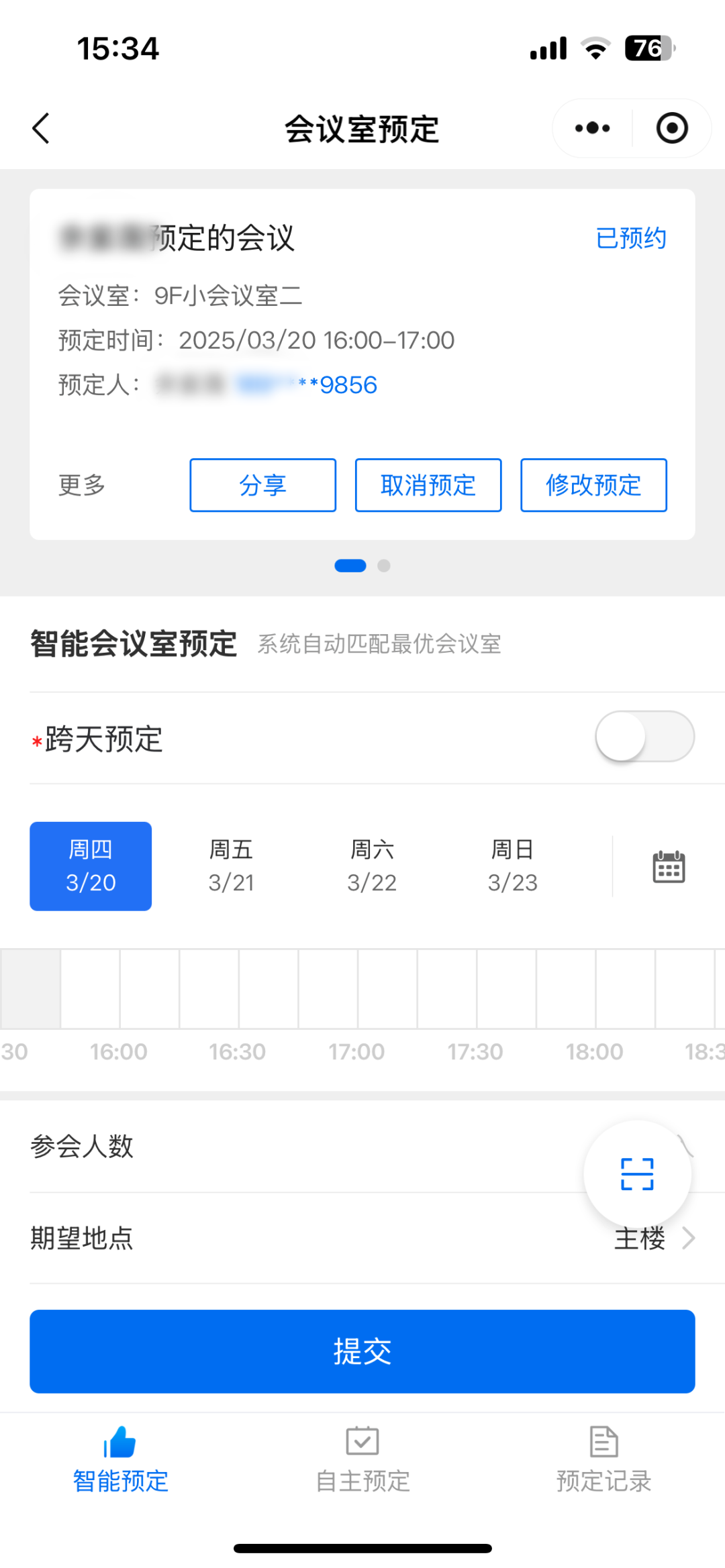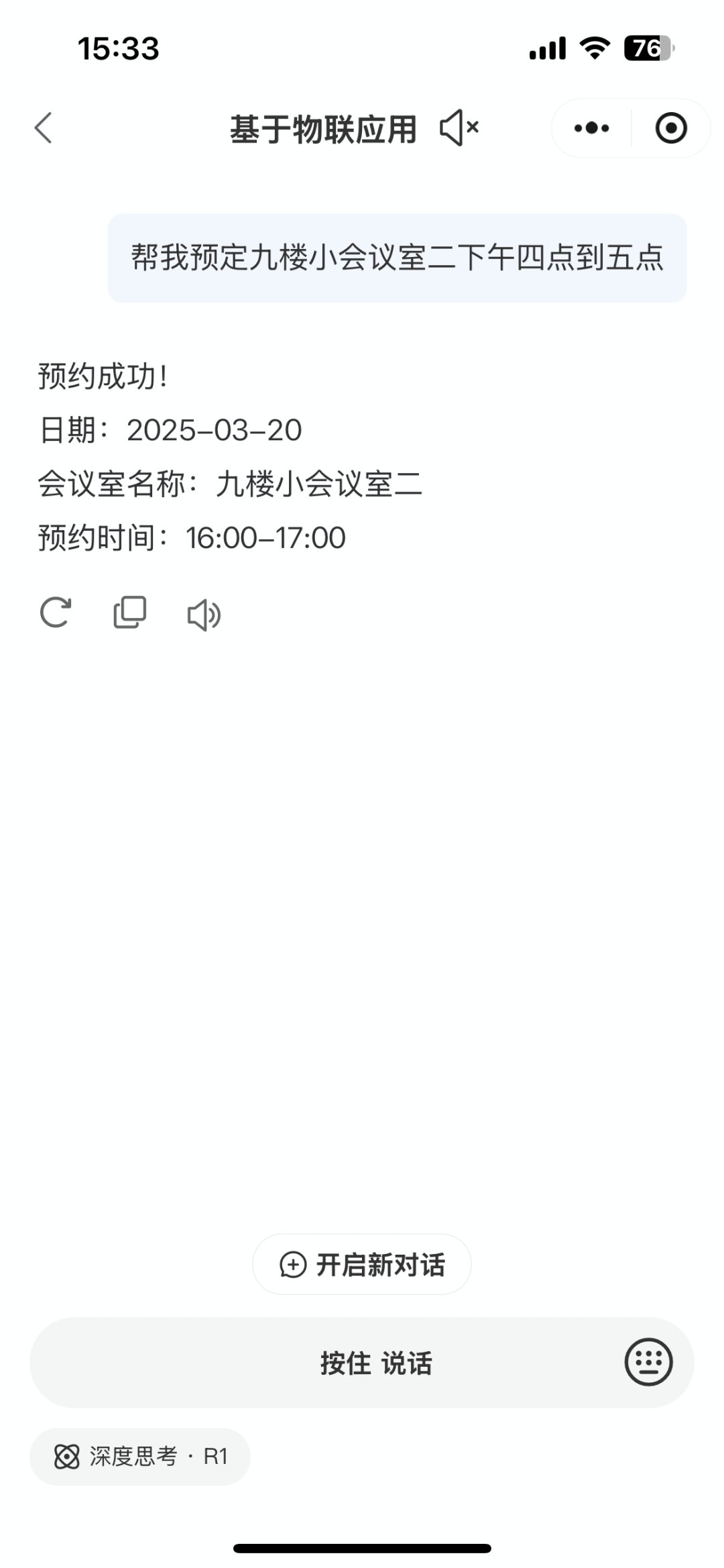 AI助手在理解用户指令后,便会执行命令,而与之联动的小达物联APP上可以看到,会议室已经预定成功,同时会议室门口的交互屏上,也会即时显示当前的会议预定状态。