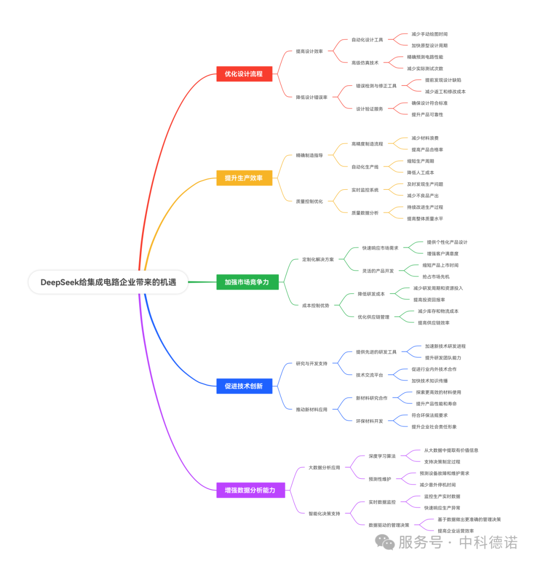 根据业务流程梳理结果,确定DeepSeek具体应用场景。如在设计环节,利用DeepSeek进行电路设计方案的优化、辅助生成设计代码等;在生产环节,用于生产流程的优化分析、设备故障的预测与诊断等。