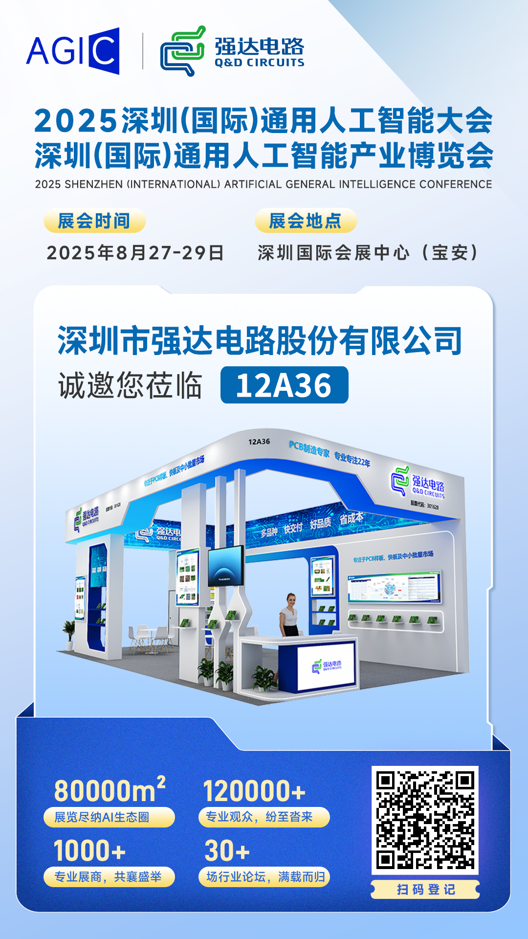 8月27-29日,2025深圳(国际)通用人工智能大会、深圳(国际)通用人工智能产业博览会将在深圳国际会展中心(宝安)举行,以“模驱具身·智启未来”为主题,汇聚业内诸多优秀企业、权威专家与专业观众。强达电路作为PCB行业中小批量、高端样板制造商参展,诚邀您的拨冗莅临!