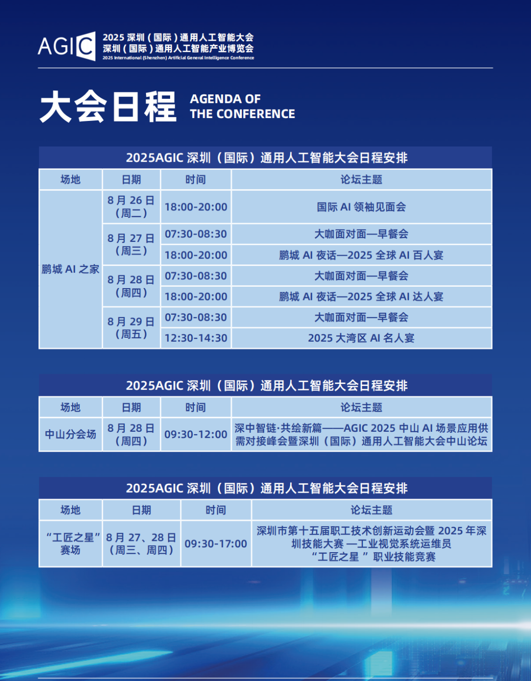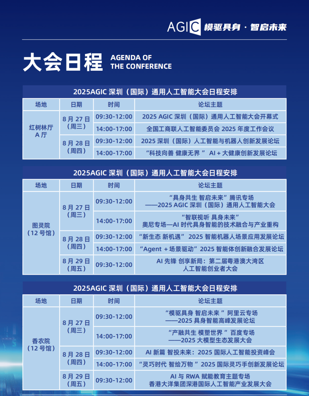 作为深圳建设 “全球人工智能先锋城市” 的关键载体,2025AGIC 大会不仅是技术与产品的展示窗口,更是全球 AI资源深度链接的合作枢纽。此刻,100 项全球首发技术已准备就绪,“AI 未来城” 实景体验区已开启,43 场顶尖论坛即将碰撞思想火花,超 30 亿元意向合作商机正加速汇聚。8月27日至29日,深圳国际会展中心(宝安)邀您亲临现场,与 20 国科技力量共探 “模驱具身・智启未来” 的无限可能,在这场全球 AI 盛宴中抢占产业变革先机,共绘人工智能赋能实体经济的新蓝图!