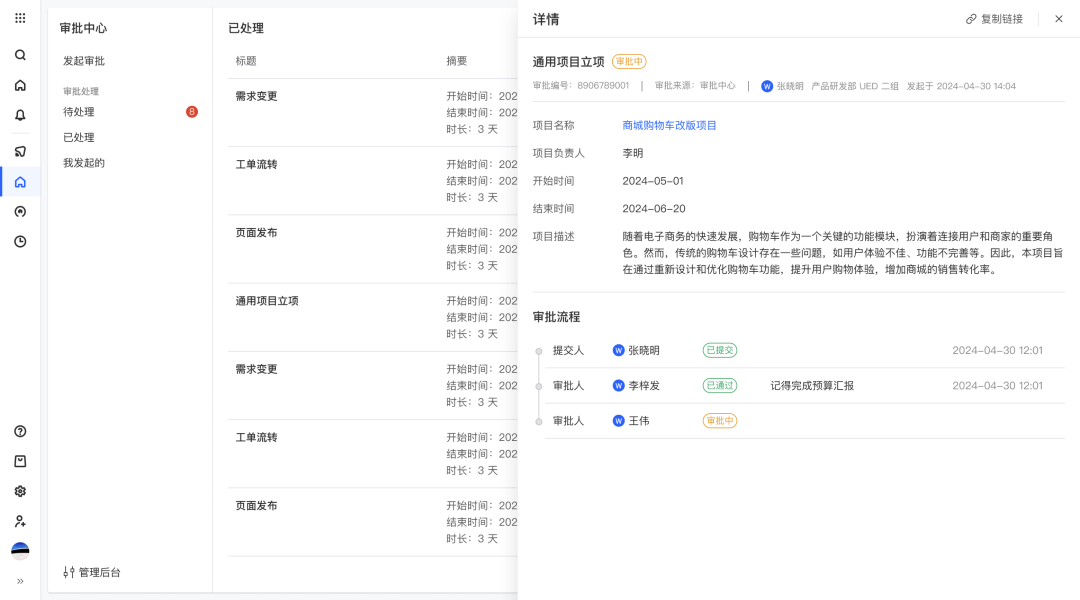 ONES Approval 审批管理是一款旨在简化和优化审批流程的高效工具。通过灵活的自定义选项,能够满足不同业务场景的需求。用户可以方便地创建、提交和追踪审批请求。同时,管理者能够实时查看审批进度和历史记录。