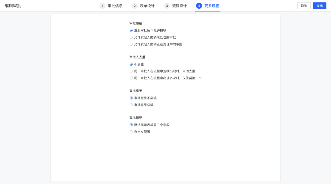 审批撤销、去重等设置