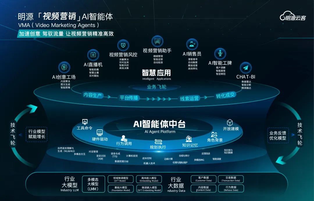 1、成熟 AI 模型驱动的智慧营销:依托于 AI 基础模型的能力,结合沉淀的自有模型和行业唯一大数据库,并结合自有能力调优,布局「AI*数字营销」的各场景智慧应用。尤其在以抖音/视频号/小红书等流量平台为核心的视频营销场景中,以「VMA 视频营销 AI 智能体」的能力,开发一系列智慧应用,帮助客户实现高效率流量获客。