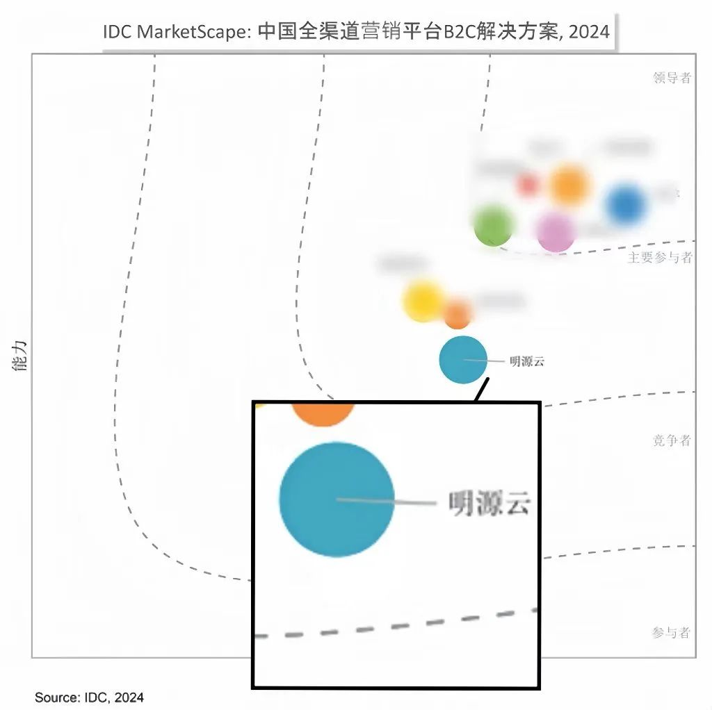 本次报告,IDC 以第三方立场,从战略和能力两个维度,对中国的全渠道营销平台技术供应商进行评估,涵盖企业在选择营销平台时考虑的近 50 个指标,包括产品基础功能、专业服务、客户支持、合作伙伴生态系统、合规性、定价、高级 AI 和分析等能力。经过科学严谨的评估过程,IDC报告指出明源云具备以下三大优势: