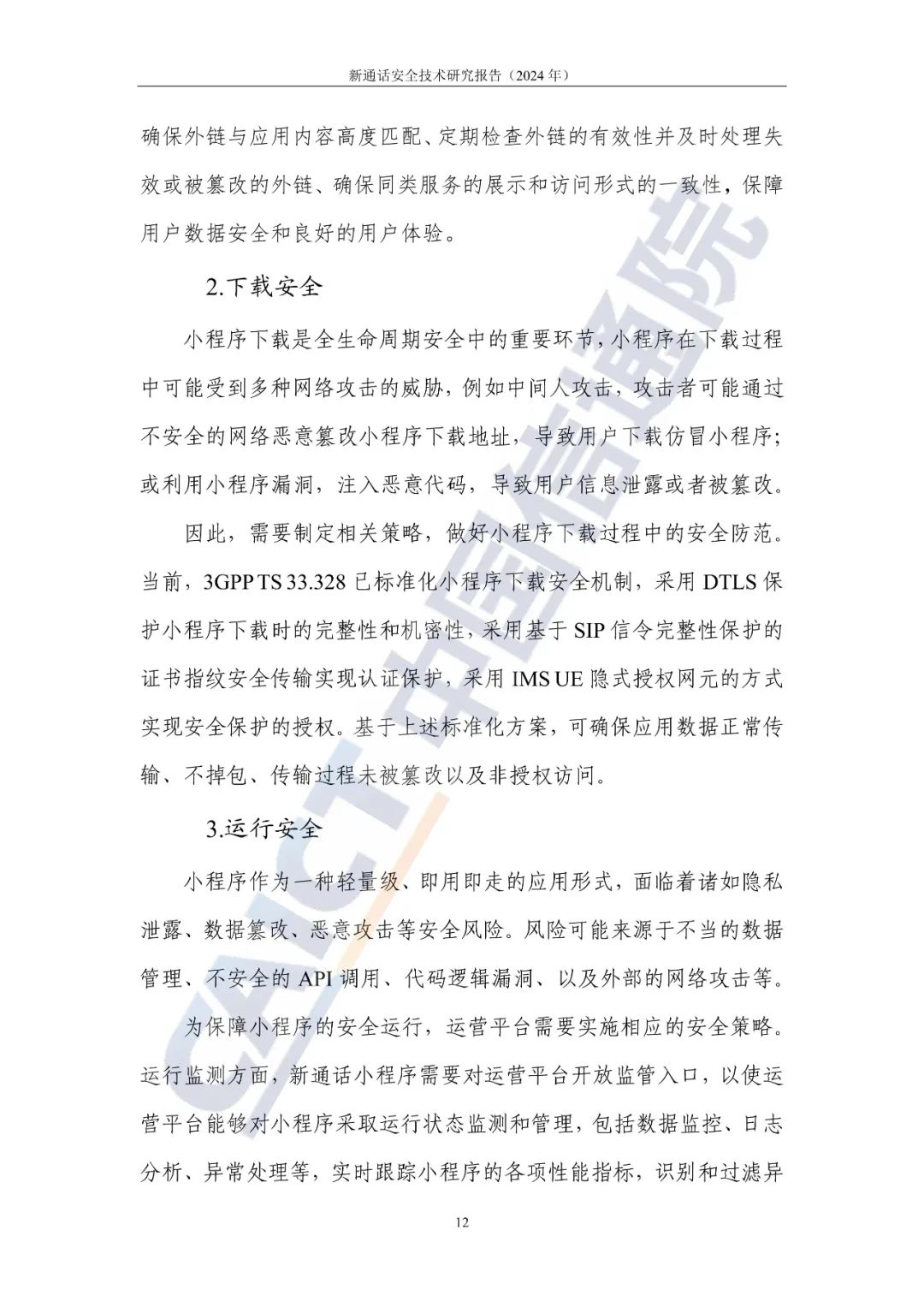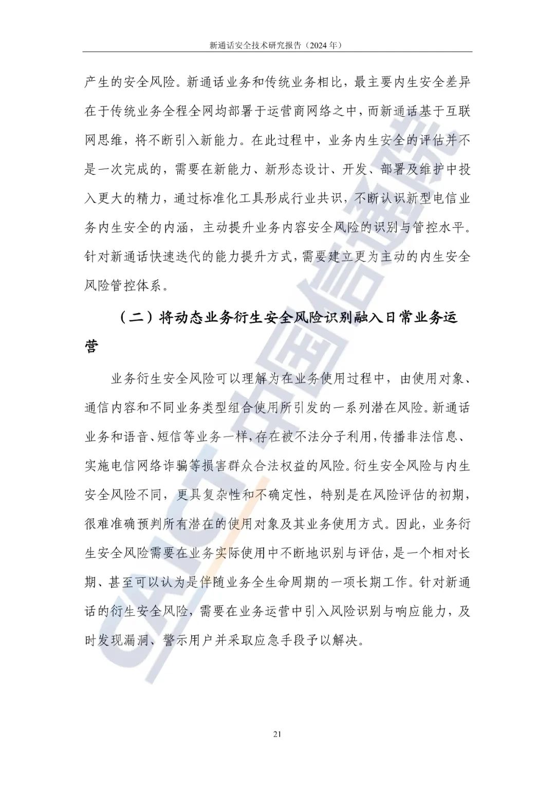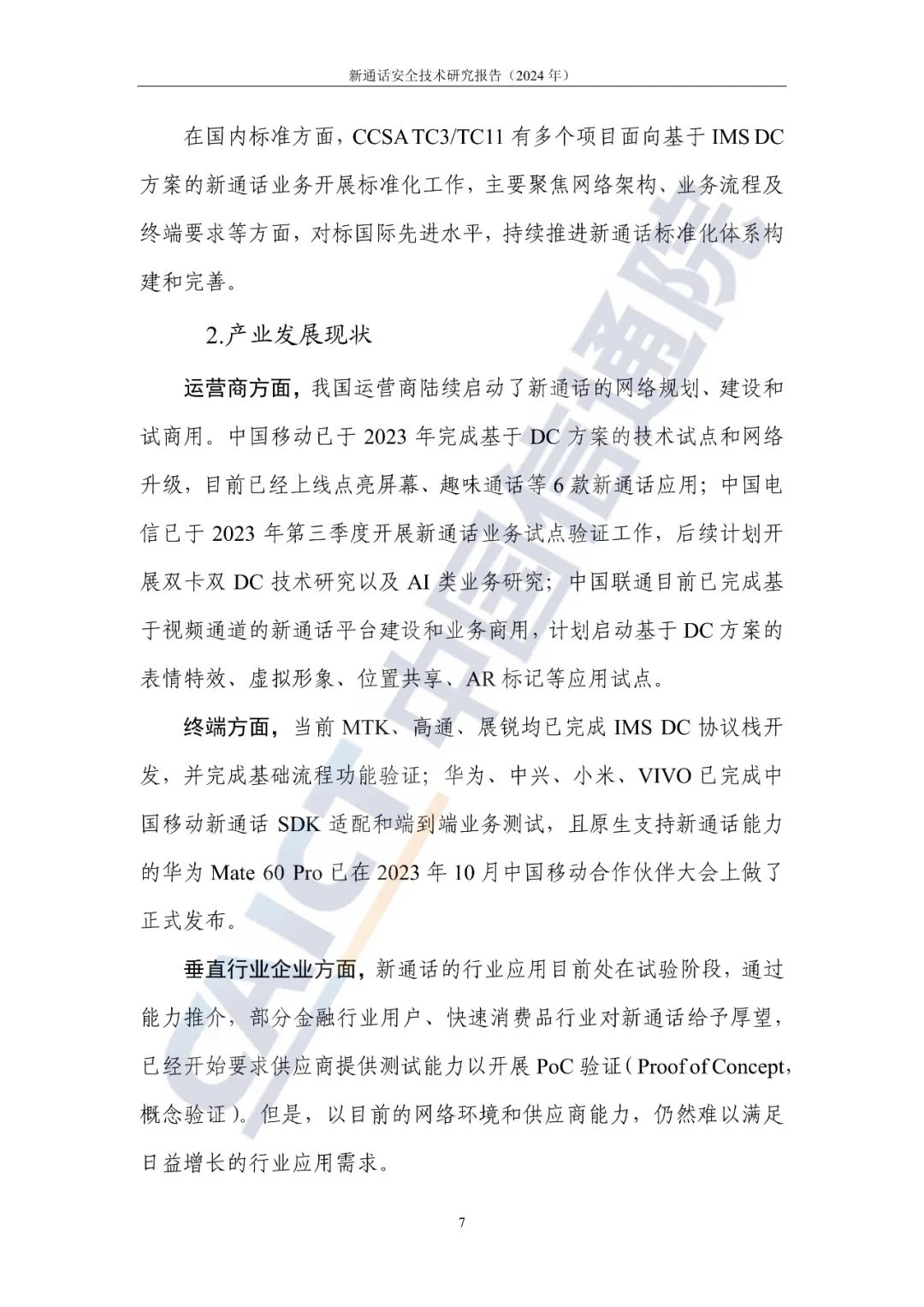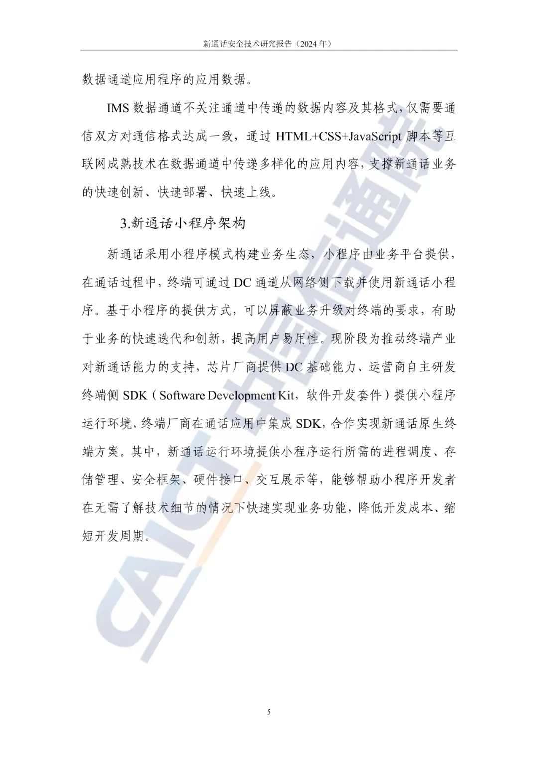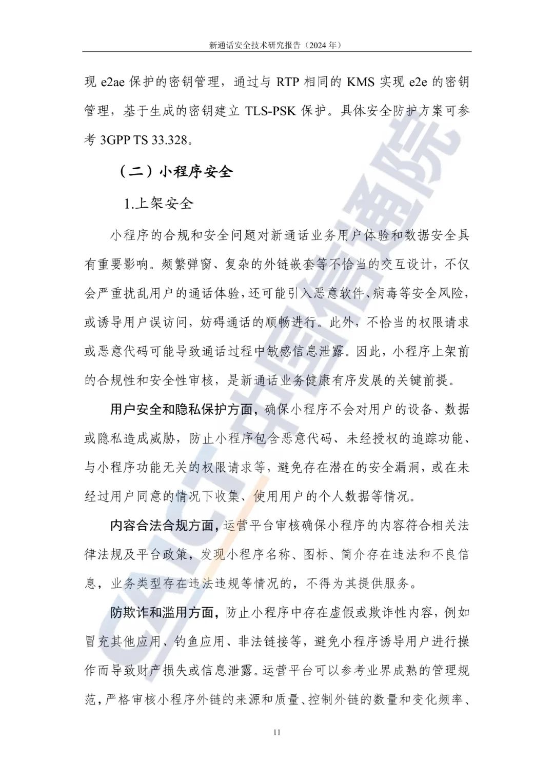 围绕新通话商用业务对应的网络侧安全、终端及应用服务安全诉求,当前3GPPICCSA已制定了相对全面的安全标准体系,同时业界小程序和应用最佳安全实践已完备,具备充分保护个人用户和数据安全的能力,能够为新通话商用业务保驾护航。针对新通话未来业务面临的安全挑战,包括防诈骗安全,能力开放安全等,亟需各产业联合定义,推动标准和生态完备建设。
