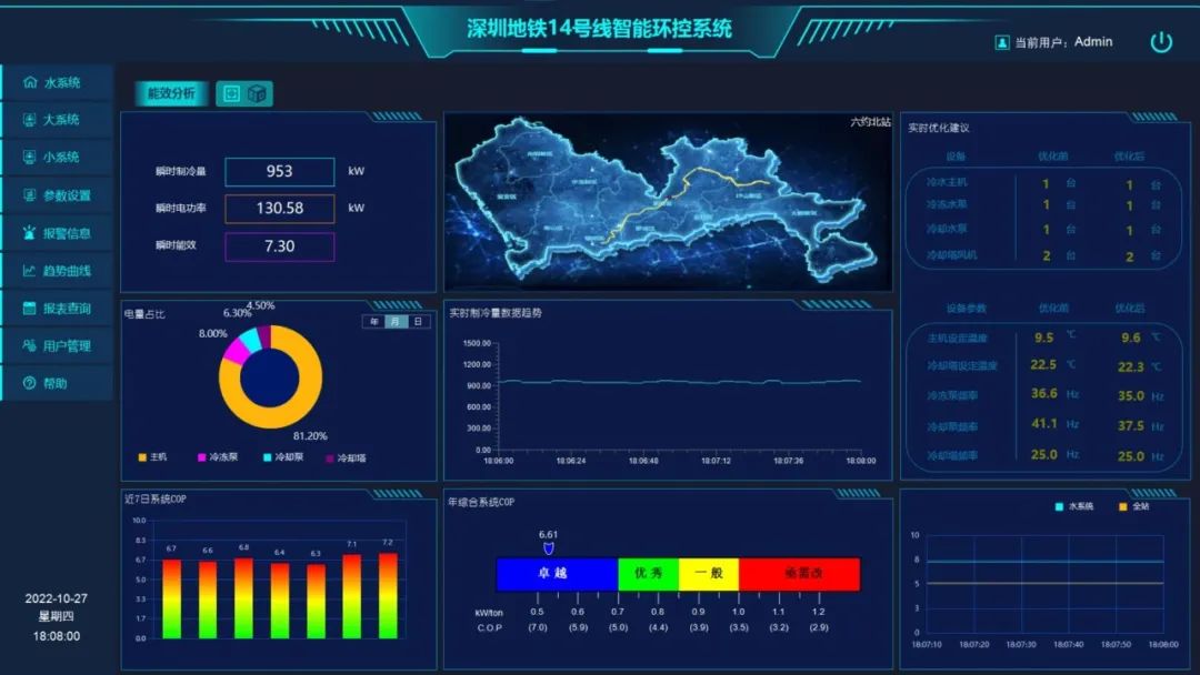 达实智能环控控制系统(Intelligent Environmental Control System),以按需供冷和系统寻优为基本节能原理,综合运用云计算,大数据,AI人工智能等先进技术,对地铁通风空调系统做出智能化有效管控。可以在满足地铁车站舒适的前提下,保障通风空调系统高效节能运行。