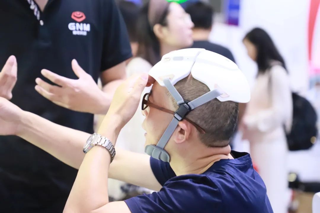 下图为观众体验新品“石墨烯渗透导入仪”。