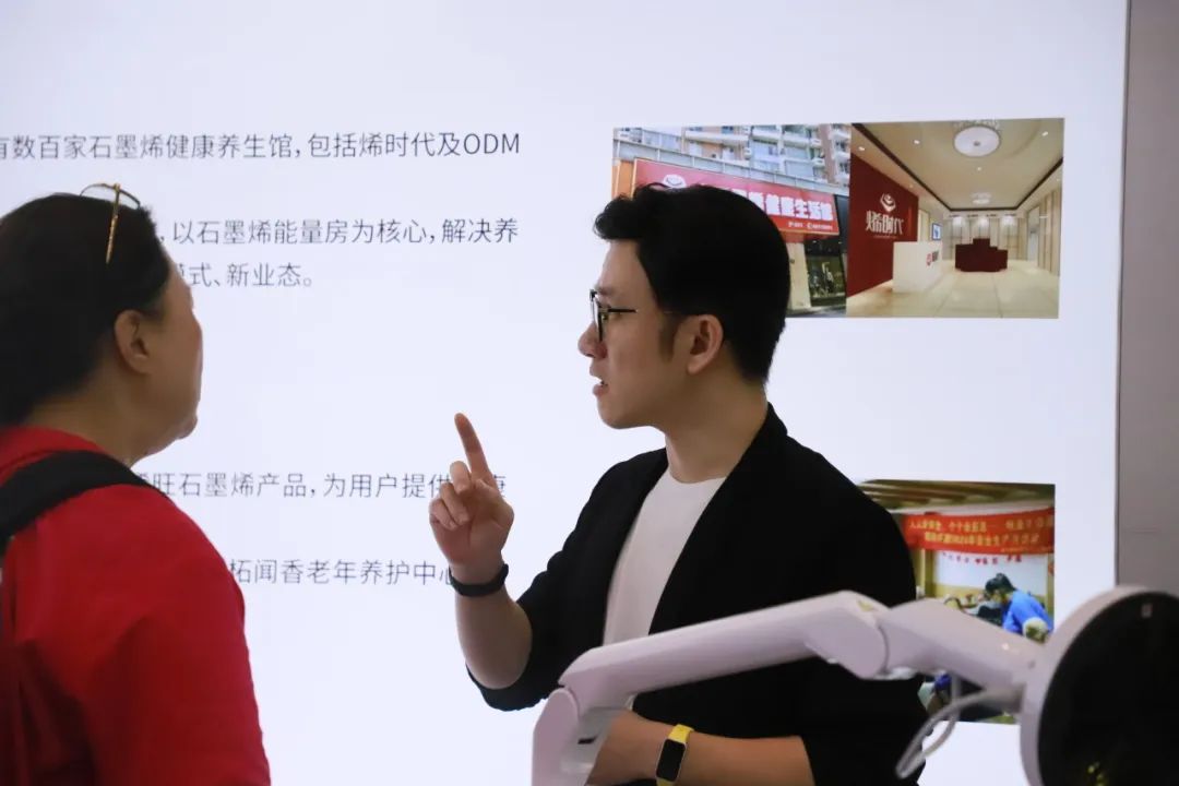 烯旺集团一众智慧健康科技产品:智能石墨烯悬灸仪、智能艾灸机器人、石墨烯能量养生桶等,成为现场焦点,观众纷纷亲自上阵体验,沉浸式体验石墨烯创新科技产品的魅力。