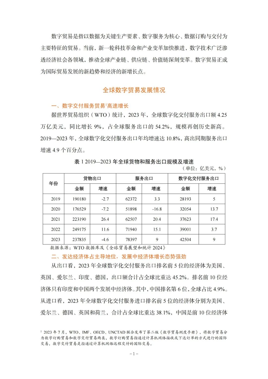 数字贸易是数字经济的重要组成部分,已成为国际贸易发展的新趋势和经济的新增长点,对建设更高水平开放型经济新体制具有重要意义。