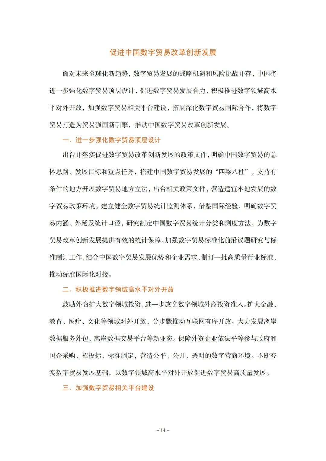 当前,大数据、云计算、人工智能、区块链等数字技术加速创新,日益融入经济社会发展各领域全过程,数字贸易蓬勃兴起,展现出强劲的发展韧性,对全球贸易的模式、结构、规则产生深刻影响,已成为全球贸易增长中最具活力的组成部分。中国秉持开放合作共赢的全球化发展理念,强化数字贸易顶层设计,扩大数字领域对外开放,大力发展数字贸易新业态、新模式,加快对接高标准数字贸易规则,打造建设贸易强国的“新引擎”。