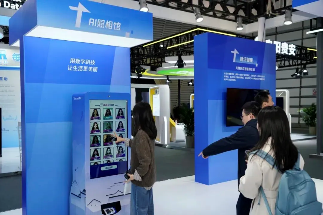 在腾讯的展位,一款AI照相馆的应用引发观众排队体验。基于腾讯优图实验室自研图生图算法,能够将参观者拍摄的照片转化成动漫、水彩、插画、黏土、玉石等多样风格,仅需5秒钟,照片即可自动生成打印。
