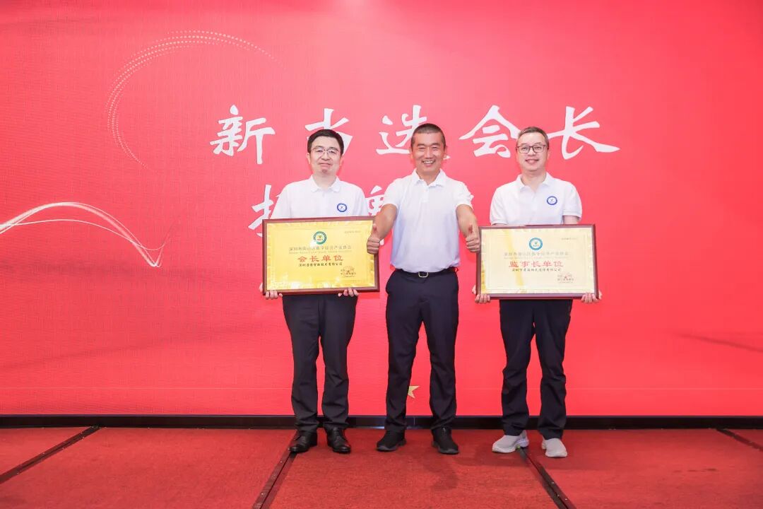 秘书长罗莹汇报了有关换届选举的工作方案、办法和议程,以及第二届理事会和监事会候选单位名单等各项事宜。通过无记名投票选举产生新任会长、监事长。南山区政协经济科技委员会主任姚首强为新任会长徐明、监事长张韶东进行授牌。
