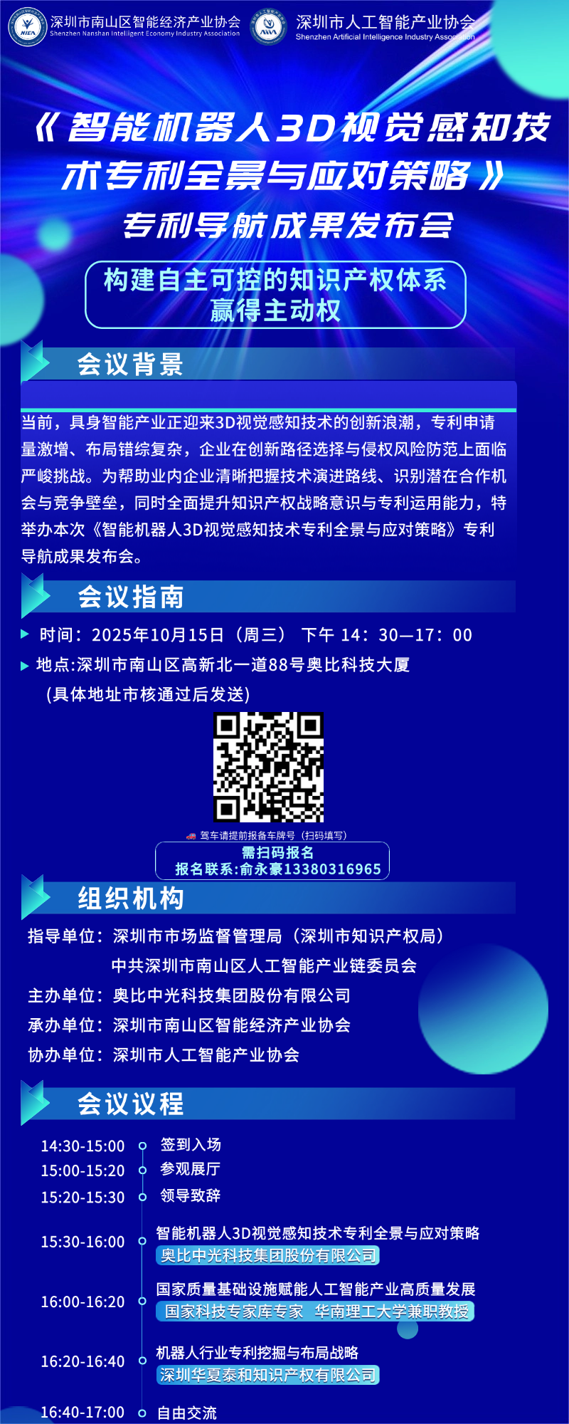 【活动报名】报名通道已开!10月15日深圳3D视觉专利全攻略,人多干货多,快拉小伙伴锁定席位!