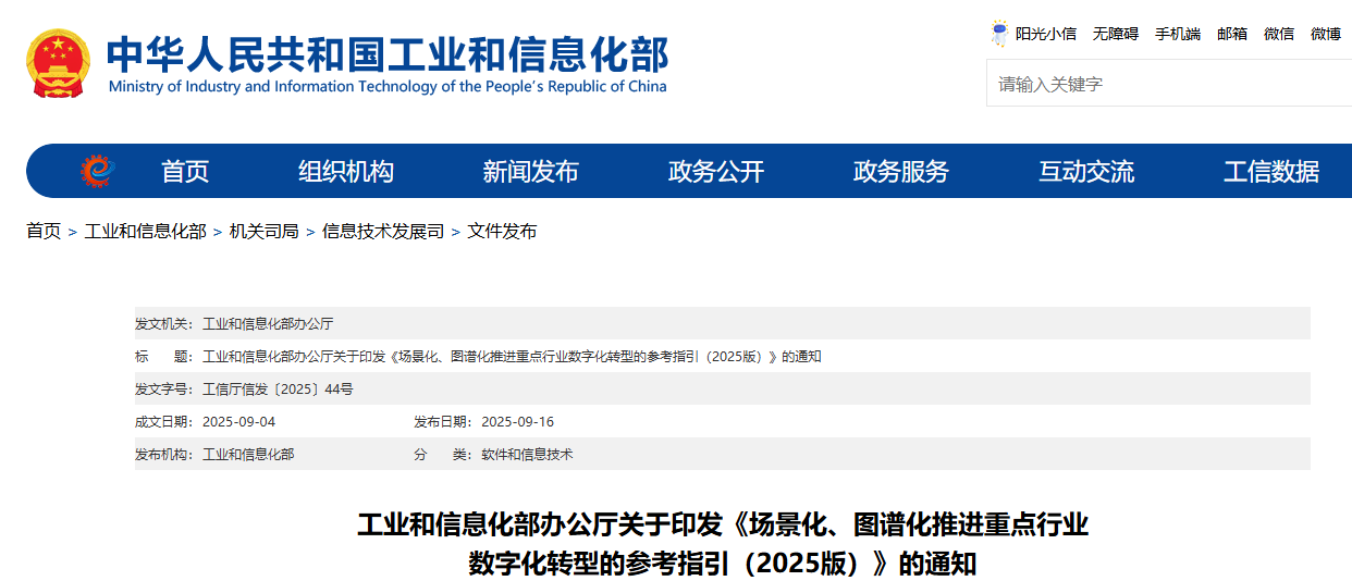 工业和信息化部近日印发《场景化、图谱化推进重点行业数字化转型的参考指引(2025版)》。