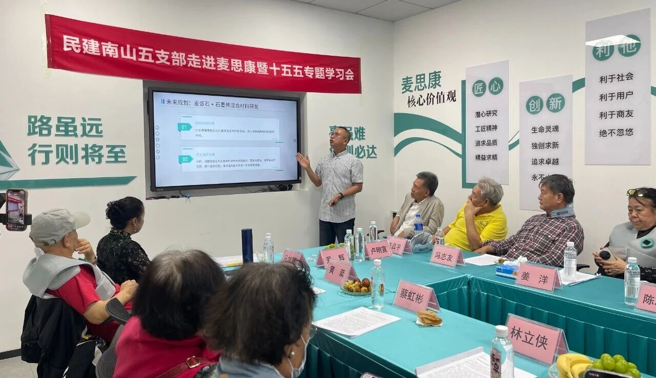 2025年11月11日,中国民主建国会深圳市南山五支部一行18位老年高知专家与会员代表走进麦思康健康科技有限公司,开展以“银龄献策,助企兴业”为主题的调研和学习交流活动。