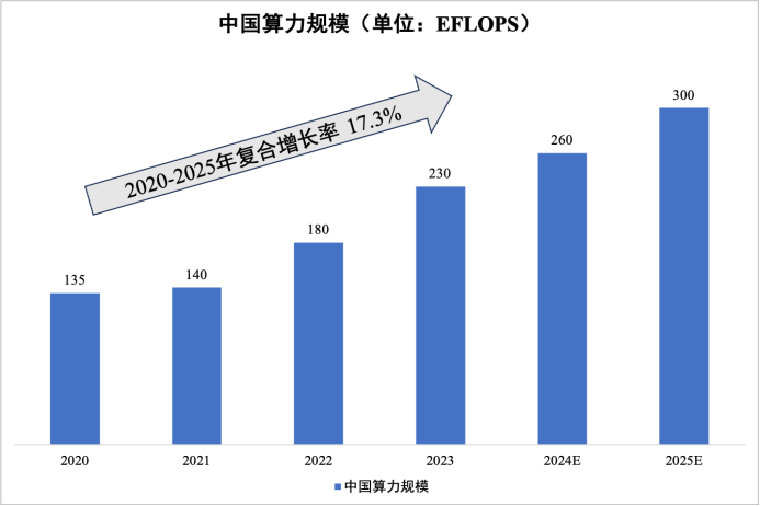 当前,以大模型为引领的人工智能发展浪潮向纵深演进,算力成为世界主要国家竞相部署的新焦点,成为新一轮科技革命和产业变革的“必争之地”。据国家互联网信息办公室信息披露,中国算力规模从2020年的135 EFLOPS增加到2023年的230 EFLOPS,3年年复合增长率达19.4%。从算力规模总量来看,截至2023年底,我国在用标准机架超过810万架,其中智能计算占比近30%,存力规模达到约1200EB,先进存储容量占比超过25%。