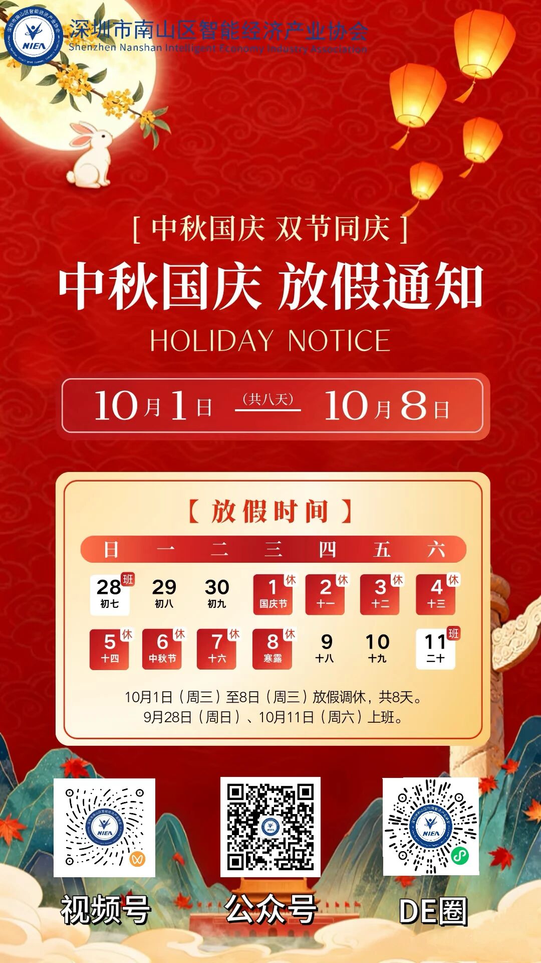 双节同庆·家国同心丨深圳市南山区智能经济产业协会祝您双节快乐!
