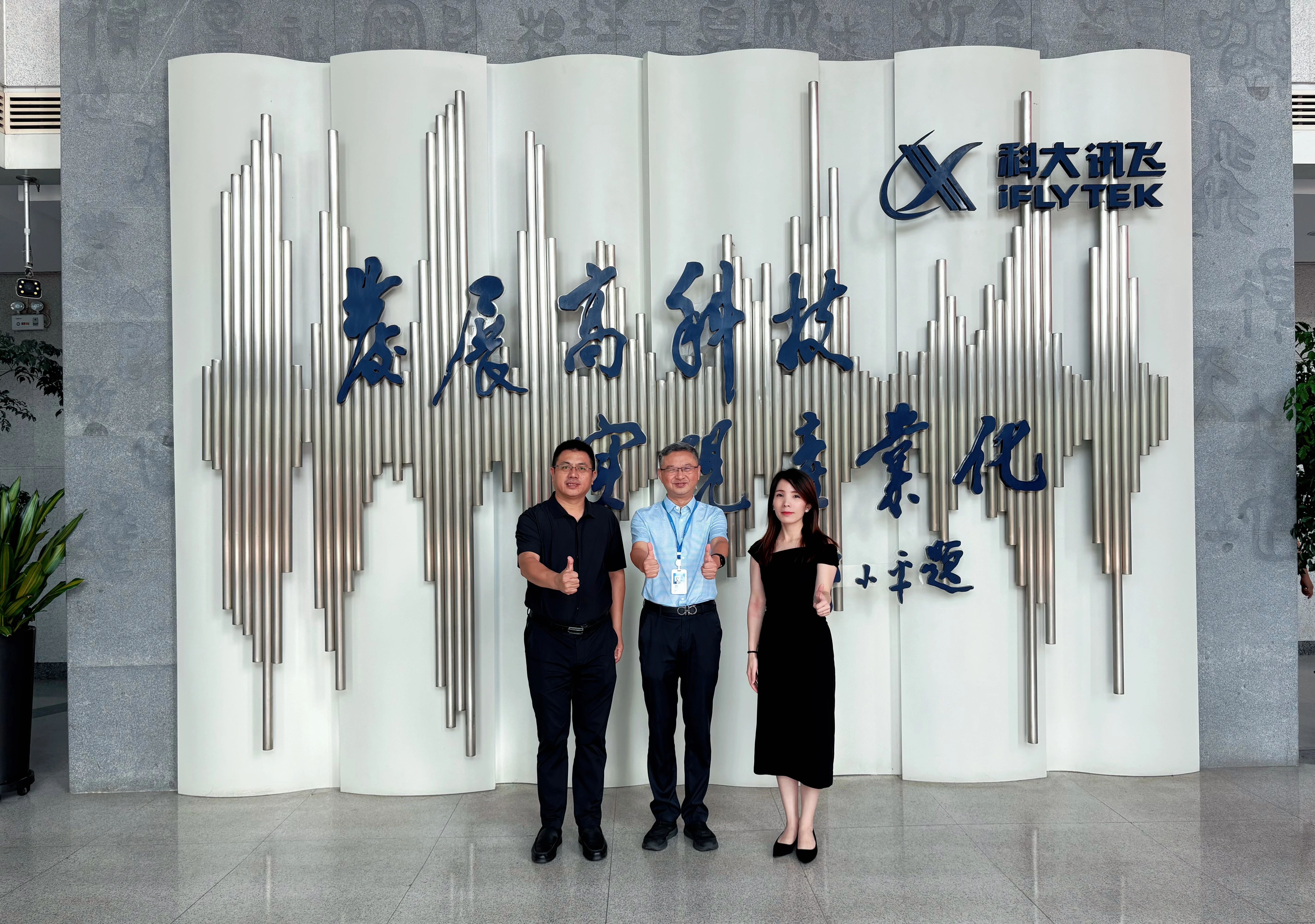 9月19日,全国工商联人工智能委员会常务秘书长、深圳市南山区智能经济产业协会执行会长范丛明一行走访合肥科大讯飞股份有限公司,科大讯飞高级副总裁赵志伟全程陪同参观企业展厅,重点介绍人工智能技术及赋能行业应用最新进展,双方在参观中深入交流技术应用心得。