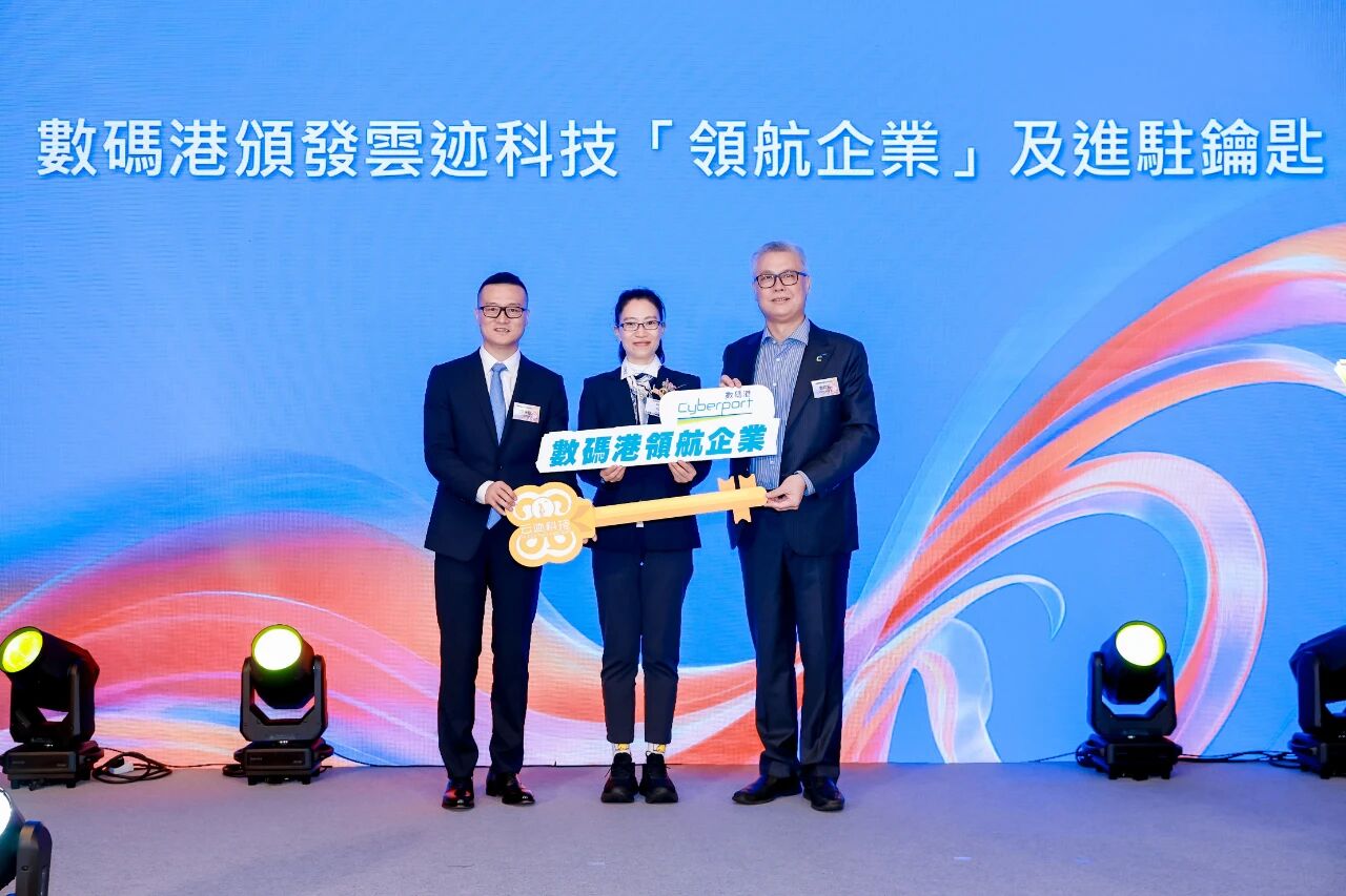 本次活动的关键性时刻——云迹科技正式获颁数码港“领航企业”认证并接收进驻钥匙。这一仪式不仅标志着旗下香港子公司SkyTread Tech实体落户数码港,更意味着公司将以这一国际级创新枢纽为战略据点,全面强化其全球技术输出与服务支撑体系。