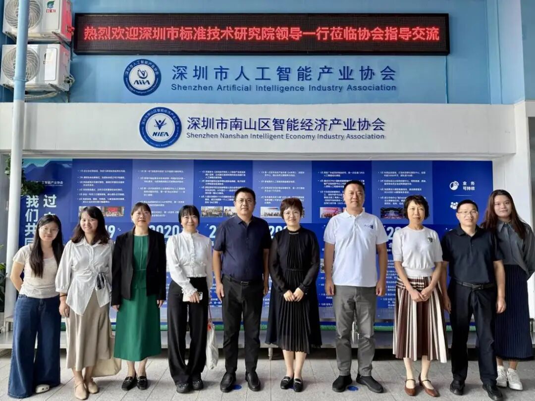 2025年10月17日,深圳市标准技术研究院(以下简称“市标准院”)副院长杜佳率领核心团队莅临深圳市南山区智能经济产业协会(以下简称“协会”)开展指导交流。市标准院知产所所长谭丽、标研中心副主任刘彬彬、产业所副所长李媛红、知权鉴定评估中心主任骆发权、标研中心部长王丽娟、产业所研究员赵莹随行;协会执行会长范丛明、执行副会长吕刚、标准部常务副部长郑美惠热情接待,双方围绕人工智能产业标准、知识产权保护与转化、产业协同发展等核心议题,展开深度对话与务实探讨,为后续合作奠定坚实基础。