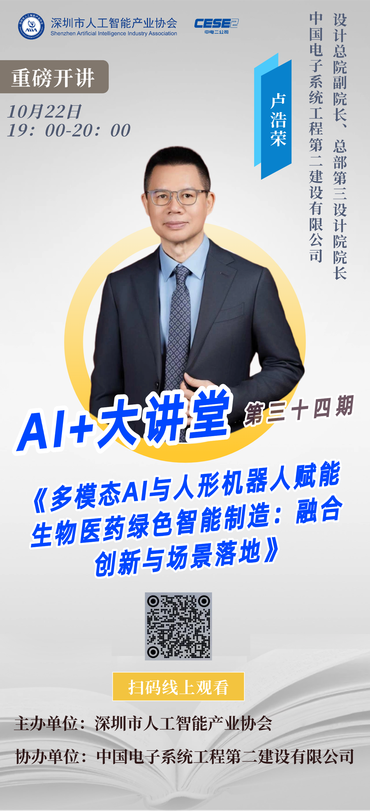诚挚邀请您参加由深圳市人工智能产业协会主办的“AI+大讲堂”第三十四期活动。