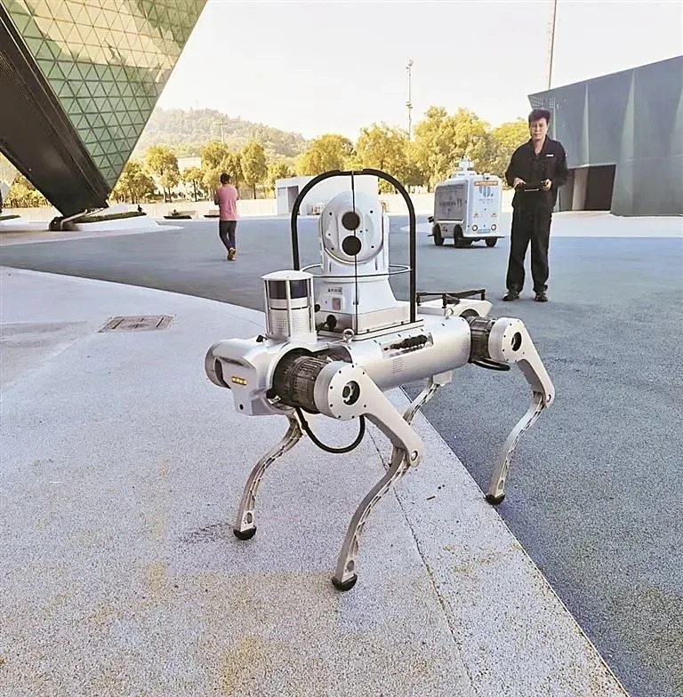 银灰色的外壳、稳健行走的四足……当一只结合了酷炫外观和灵巧身姿的四足机器狗在深圳大运中心出现时,总能引来市民的驻足围观。上一秒,人们还在为它的憨态可掬而啧啧称赞;下一秒,它就用它的矫健身手告诉你,它可不是什么养在深闺的萌宠,而是巡警队伍中的新成员。