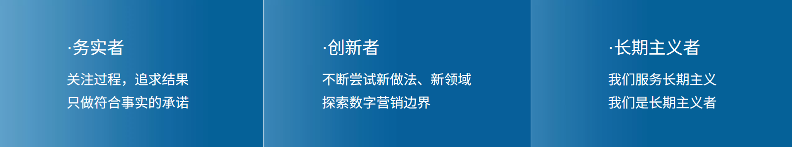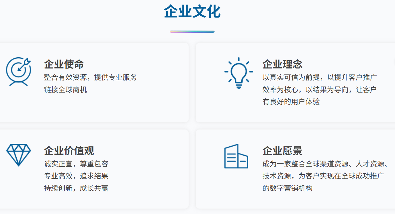 我们以深刻的全球市场理解,助力客户自如应对全球扩张的复杂性,以全链路的数字营销和增长服务(Google、Facebook、YouTube、LinkedIn、俄语区营销、Tiktok等),包括数字营销、内容营销,以及更宏观的市场进入战略,帮助中国企业以一种保留独特身份和价值的方式,与世界连接。